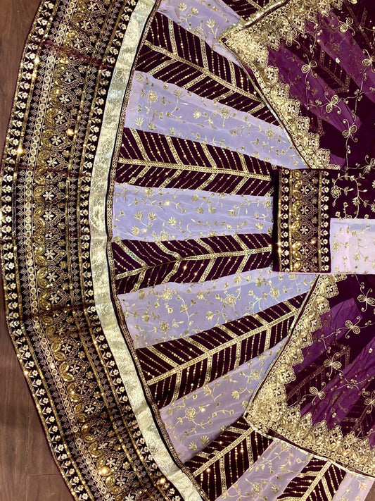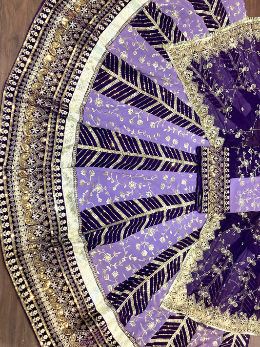 Purple Georgette 3.5 Meter flair Contrast Kali Pattern Festival Vintage Rajputi Poshak-91722