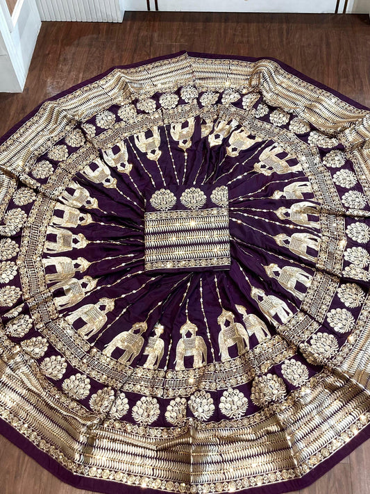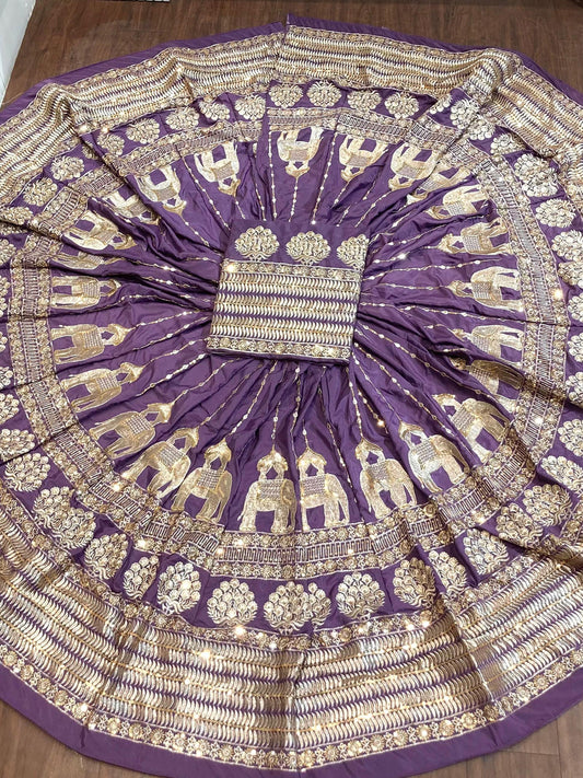 Purple color 7 Meter flair Fusing Creap Silk Festival Vintage Rajputi Poshak-91716