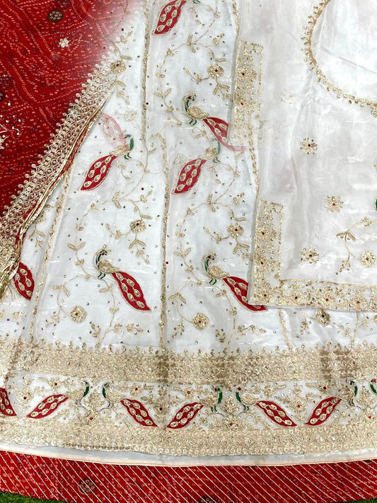 Red Bright color Half Pure Wedding Bridal Rajputi Poshak-91730