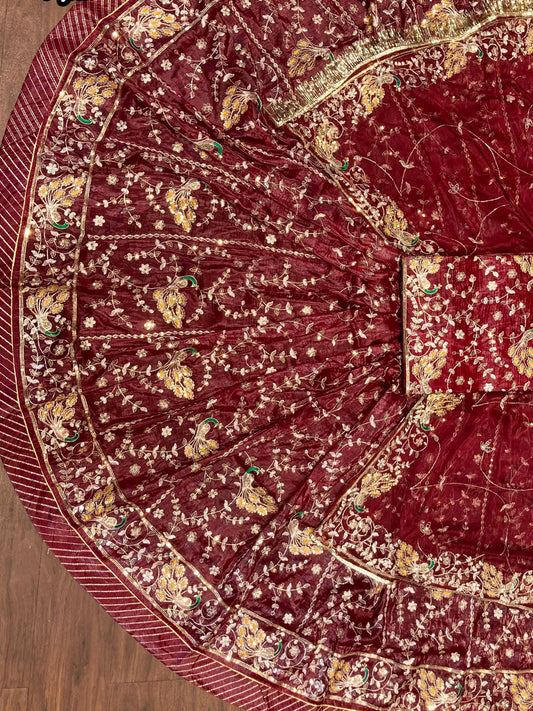 Gold Crush 4 Meter Gher Premium quality Vintage Rajputi Poshak In Maroon color-91527