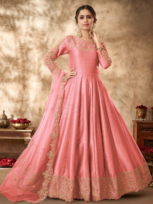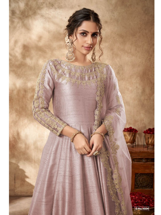 Embroidered Silk Mehendi Sangeet Gown in Purple
