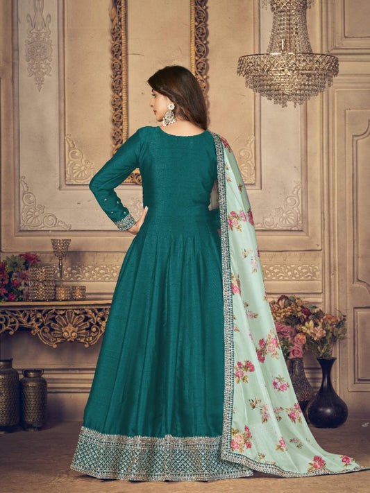 Zari Velvet Party Wear floor length Salwar Kameez In Green