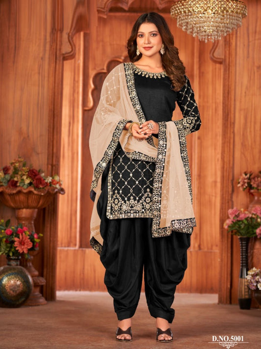Mirror Art Silk Patiala Salwar Suit in Blue
