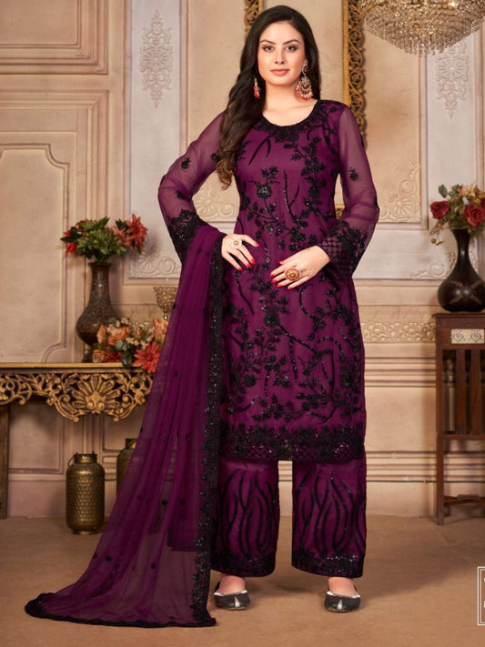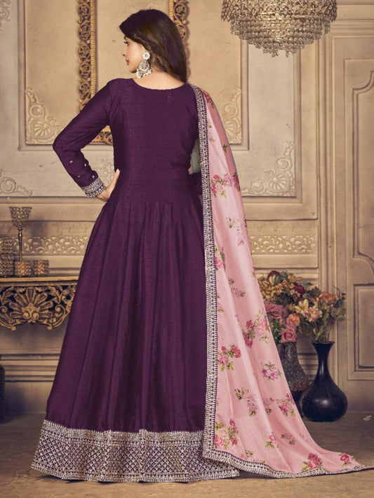 Zari Velvet Party Wear floor length Salwar Kameez In Purple