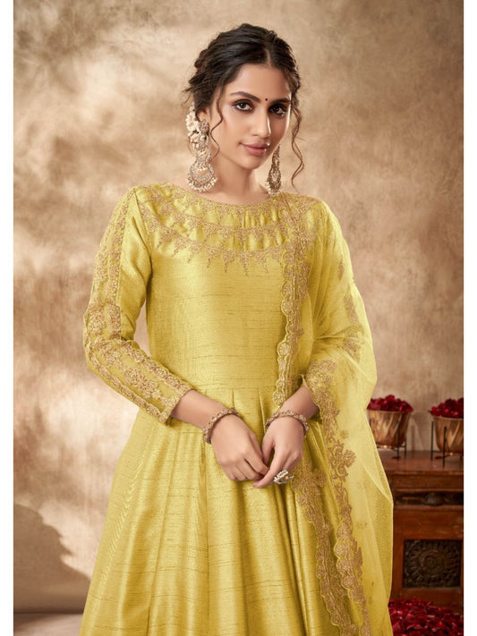 Embroidered Silk Wedding Mehendi Sangeet Salwar Kameez in Yellow