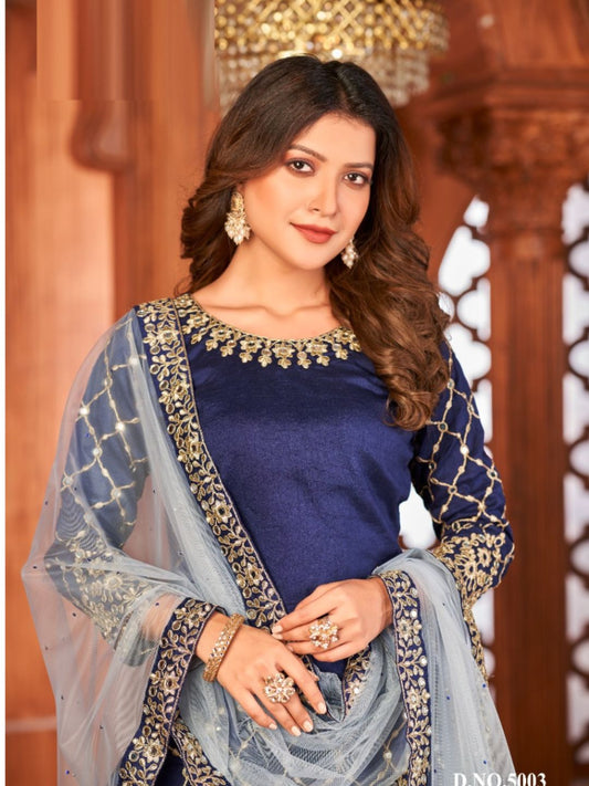 Zari Velvet Party Wear floor length Salwar Kameez In Blue