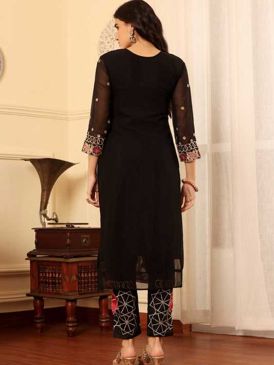 Resham Zari Georgette India Suit in Black & Dupatta Set-750034