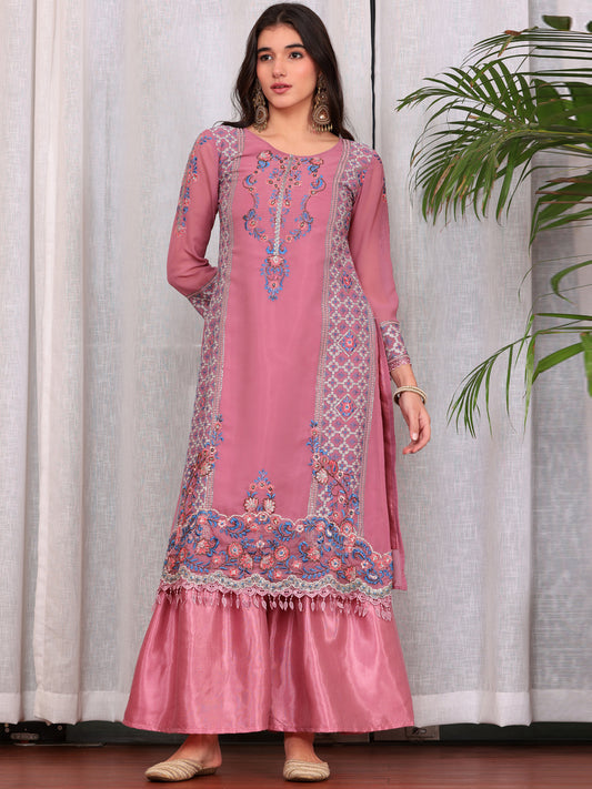 Resham Zari Georgette India Suit in Pink & Dupatta Set-750039
