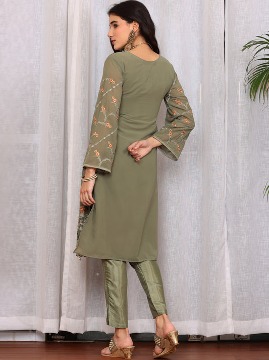 Women Faux Georgette Silk Embroidered Kurta, Palazzo & Dupatta Set-750027