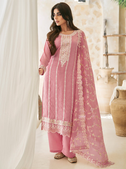 Embroidered Silk Un-Stitched Salwar Kameez in Pink Color-81594