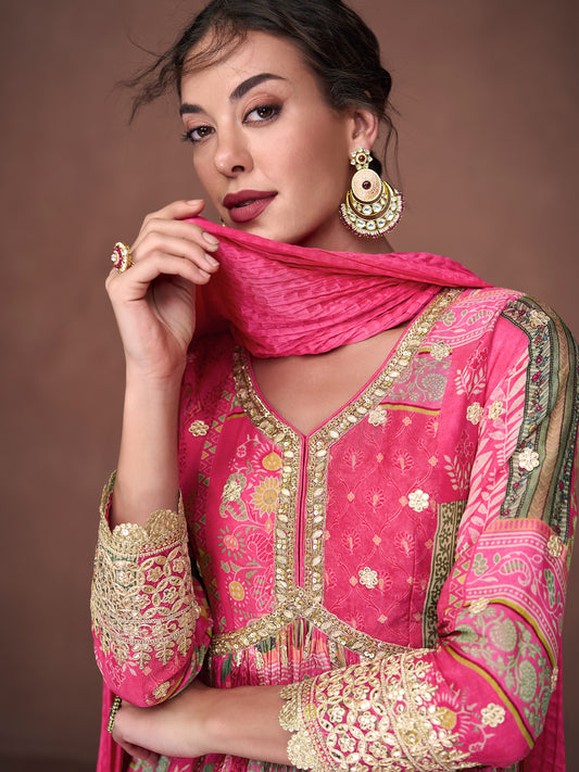 Embroidered Georgette Free Size Sharara style Salwar Kameez in Pink Color-71045