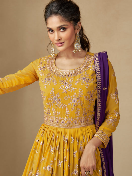 Sequence Pure Organza Silk Free Size Gown style Salwar Kameez in Yellow-71043