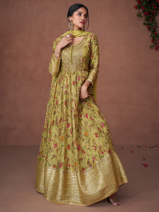 Sequence Pure Organza Silk Free Size Gown style Salwar Kameez in Green-71042