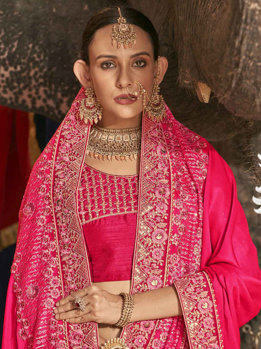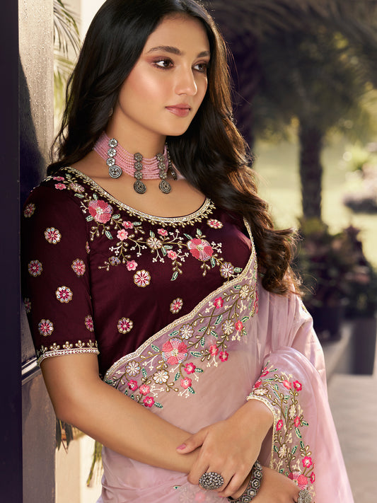 Embroidered Organza Bridal Traditional Saree In Pink Color-81709