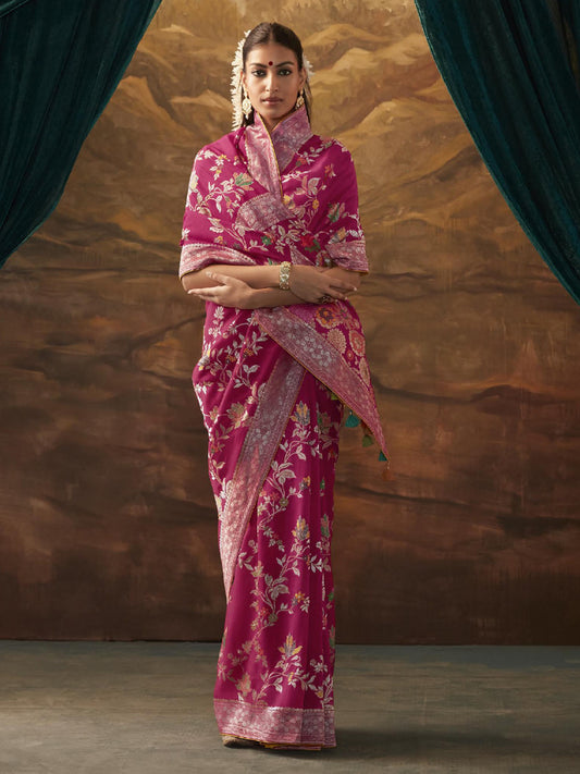 Embroidered Pure Viscose Dola Silk Traditional Bridal Saree In Pink Color-81672