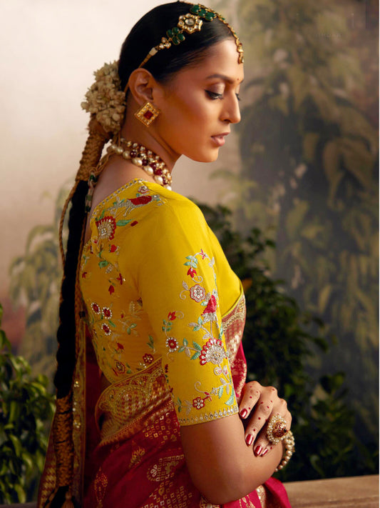 Embroidered Pure Viscose Dola Silk Traditional Bridal Saree In Yellow Color-81674