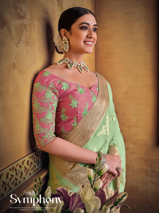 Zari Fancy Partywear South Indian wedding Saree In Green Color-81609