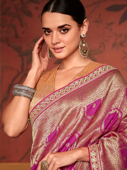 Weaving Banarasi Silk Wedding Saree In Purple-81065