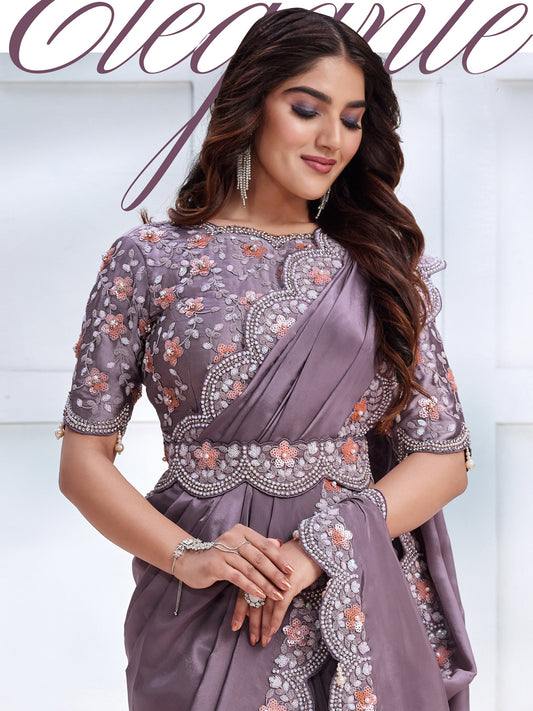Embroidered Silk Traditional Partywear Saree In Purple Color-81781
