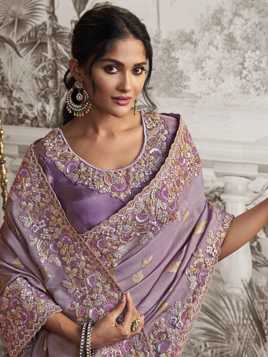 Embroidered Silk Traditional Partywear Saree In Purple Color-81783