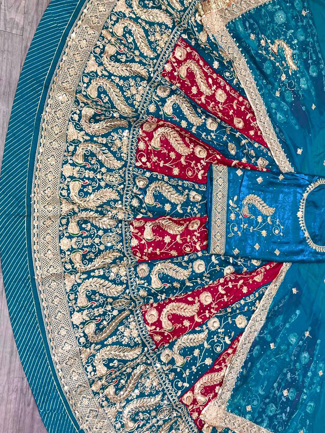 Heavy Odhni four side work with Pallu work and Butti work and Fancy Gotta turri