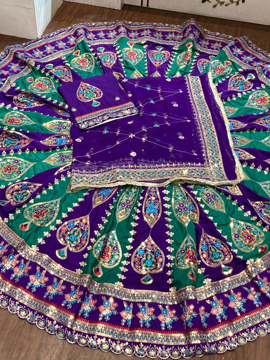 7 Miter full Gher Silk Crepe Premium quality Bridal Rajputi Poshak In Purple color-91575
