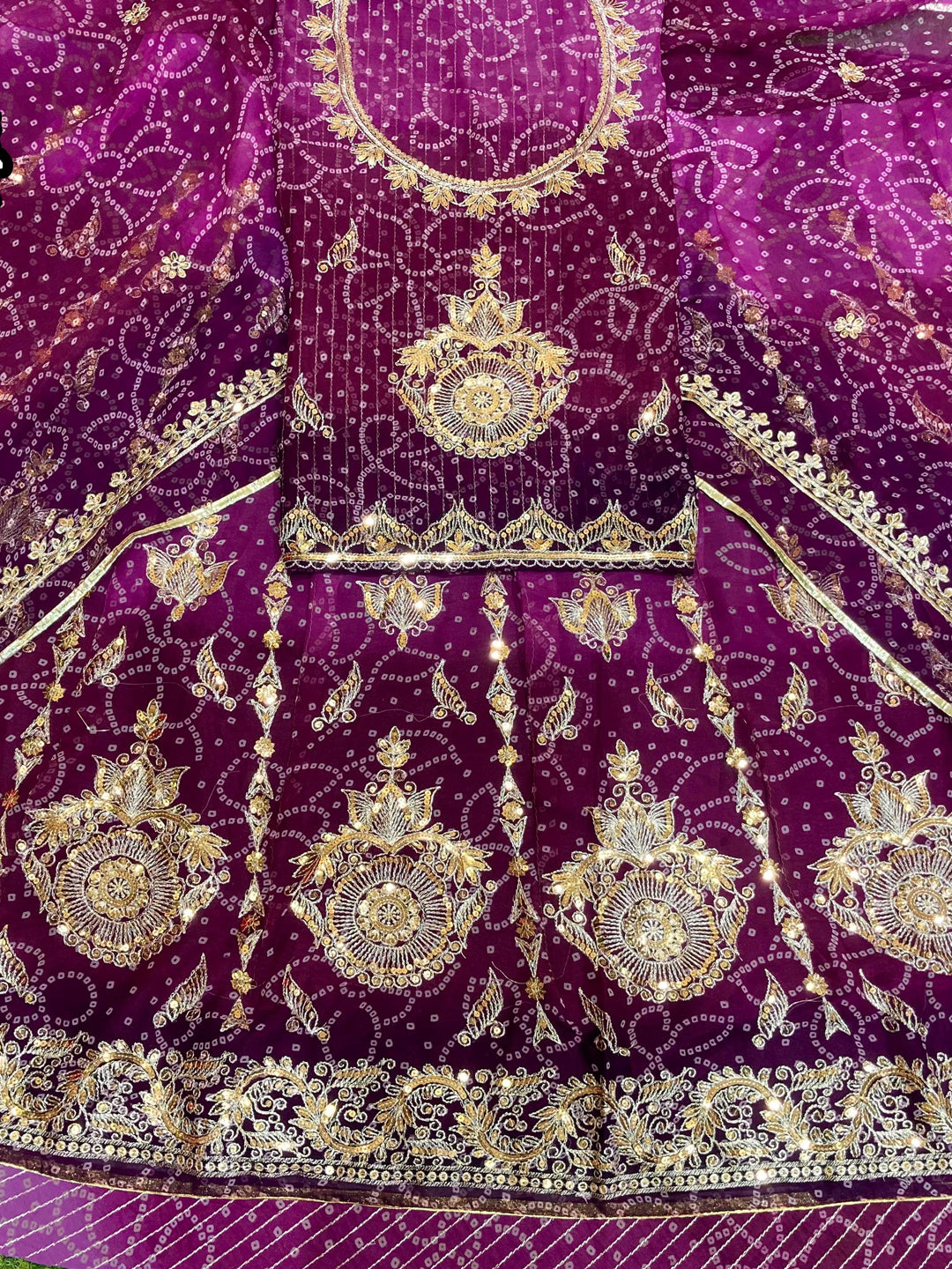 Chunnari Royal Pure Sequence Work Bright Purple color Rajputi Poshak color-91558