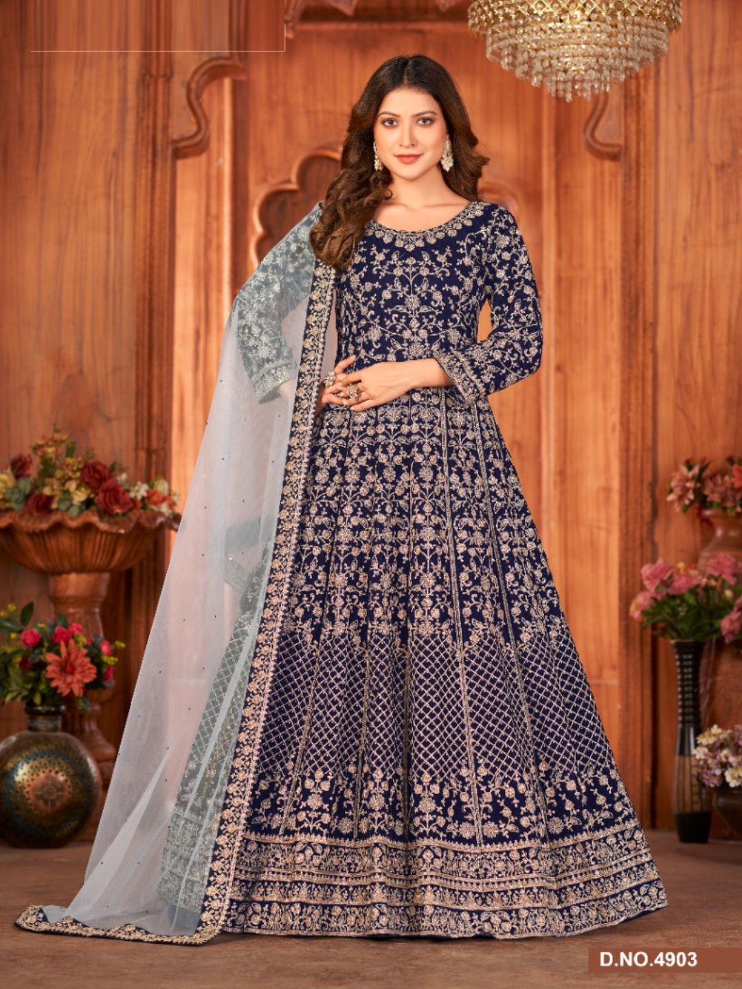 Zari Velvet Party Wear floor length Salwar Kameez In Blue