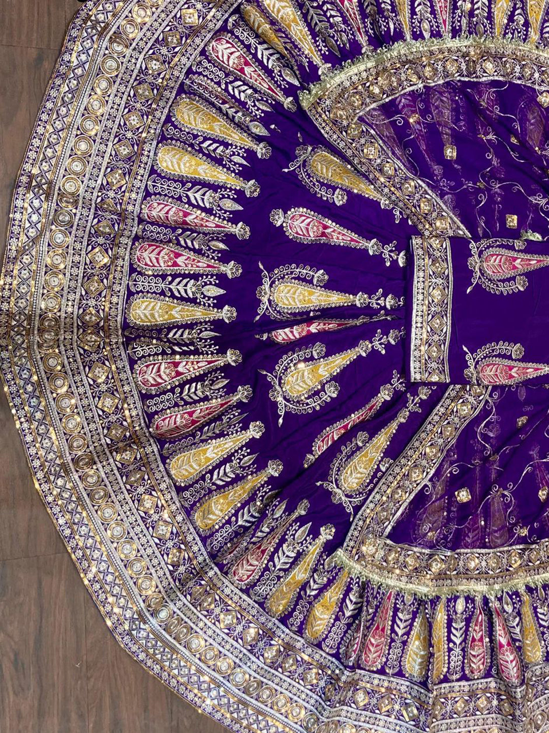 Crepe Silk Humarahi Odhani Barik Zarik Work Rajputi Poshak in Purple color-91565