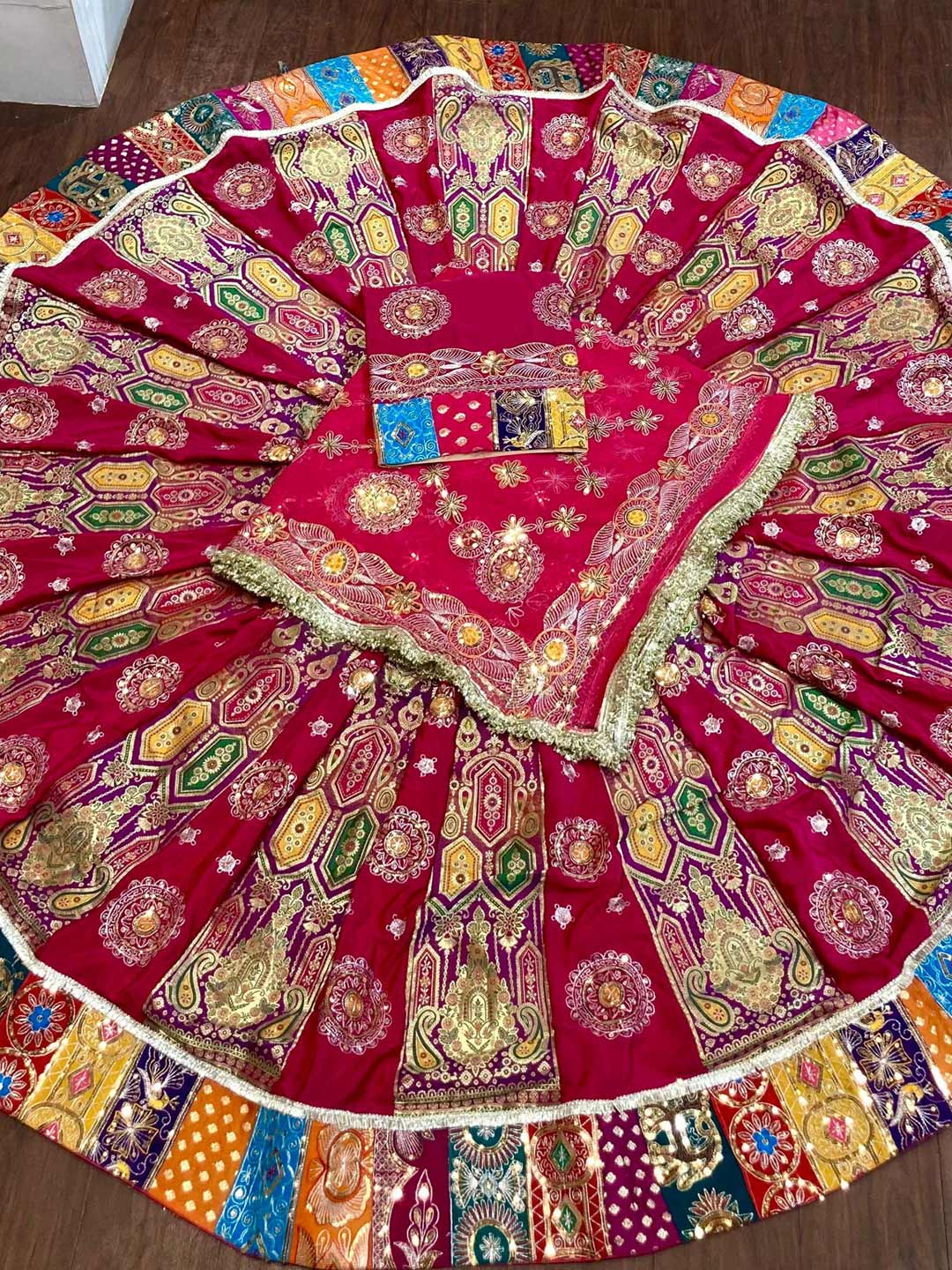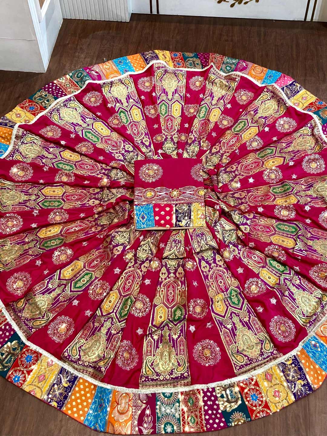 Georgette 7 Meter Flare Premium quality Bridal Rajputi Poshak In Pink color-91605