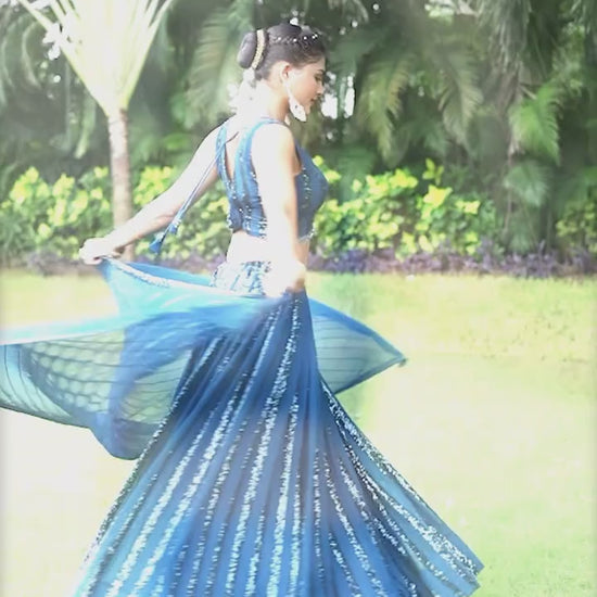 Georgette Traditional Partwear Reception Lehenga In Blue color-41092