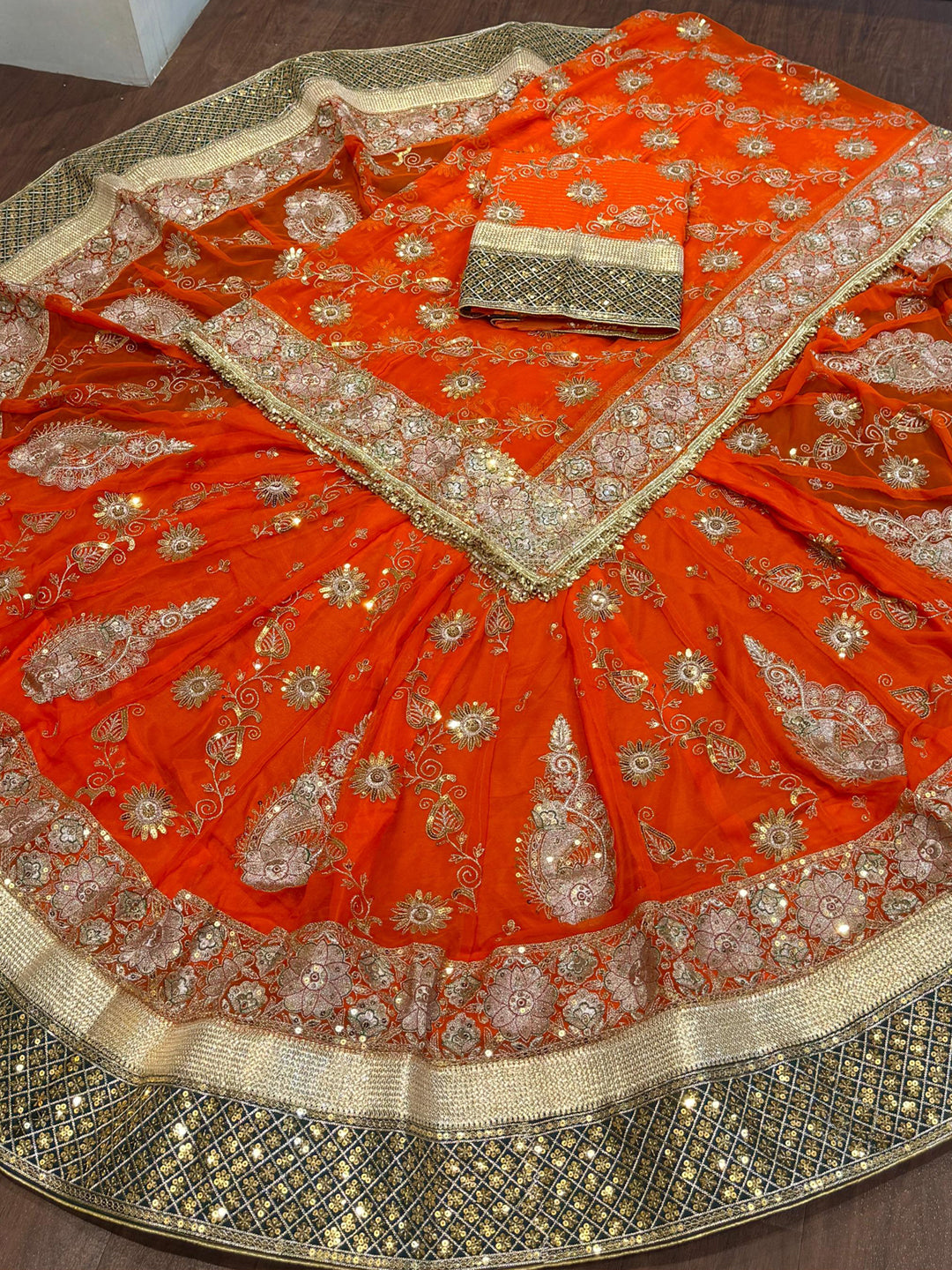 Vintage Georgette 6.5 Miter full Gher Premium quality Rajputi Poshak In Orange color-91501
