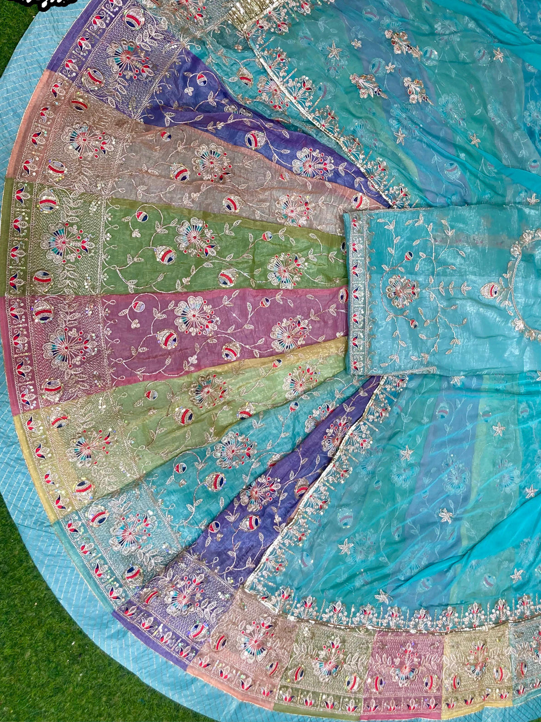 Multicolor 4 Miter full Gher Gold Crush Premium quality Bridal Rajputi Poshak-91567
