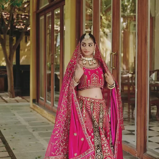 Silk Traditional Wedding Reception Bridal Lehenga In Pink color-41097