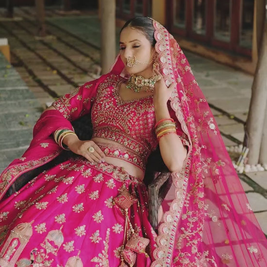 Silk Traditional Wedding Reception Bridal Lehenga In Pink color-41094