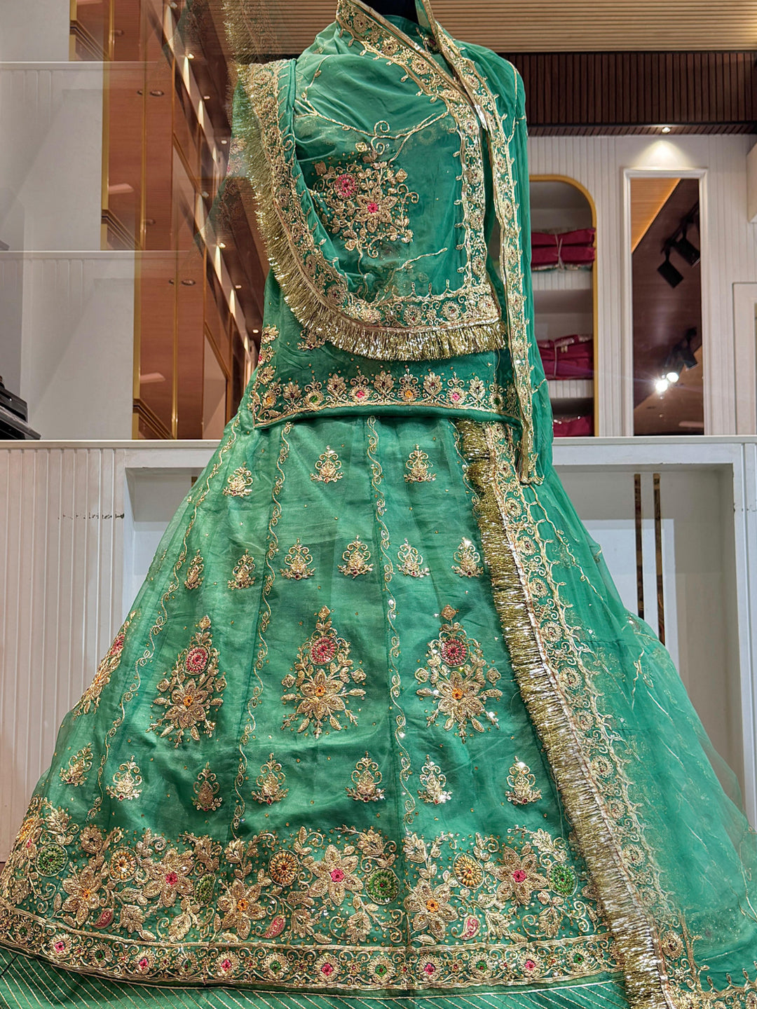 Heavy Odhni four side work with Pallu work and Zaal work and Gotta turri