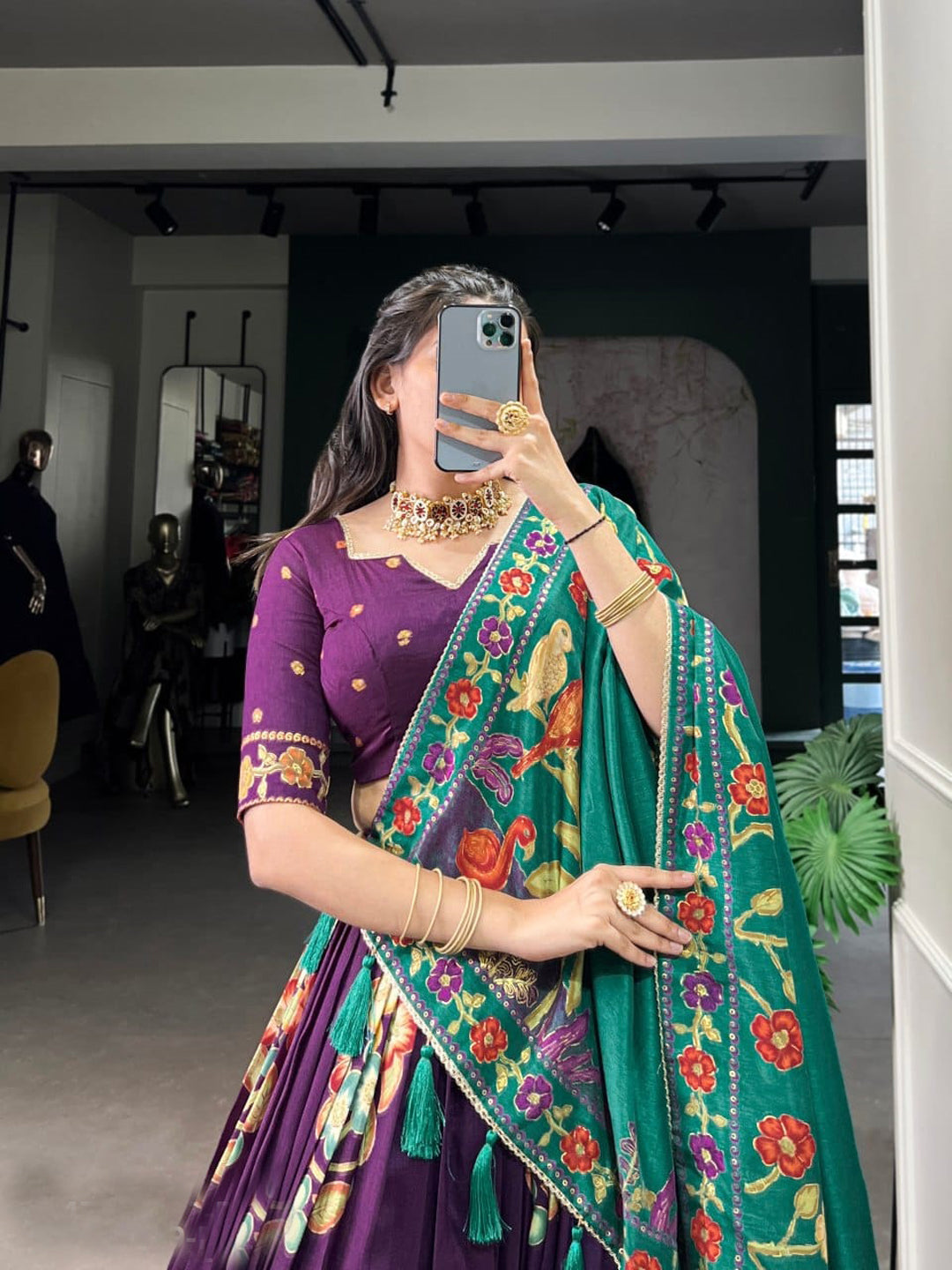 Tussar Silk Printed Reception Sangeet Semi-Stitched Lehenga Choli -40999