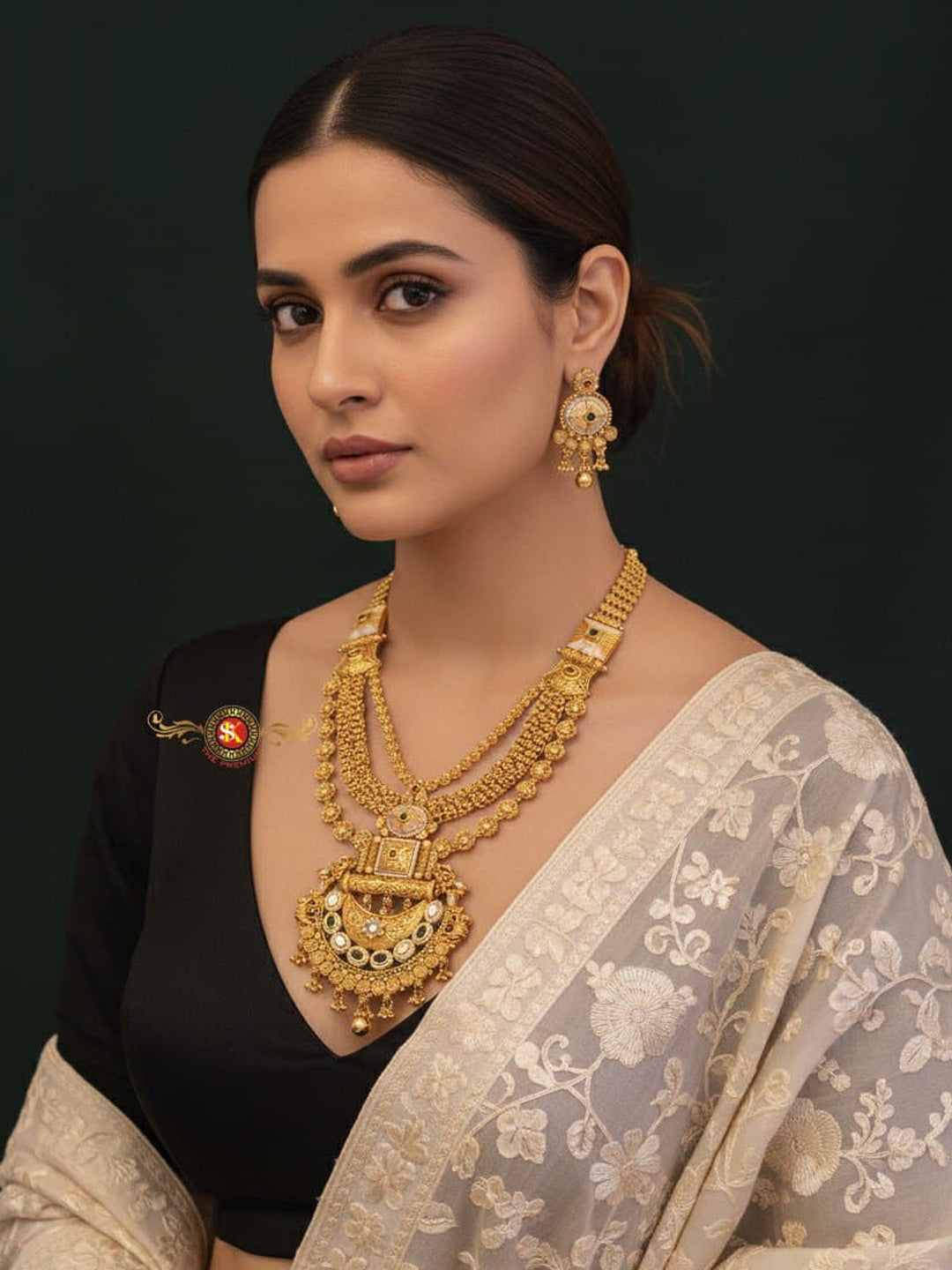 Women Antique Brass Kundan Rani Haar Necklace Jewelry Set -20231